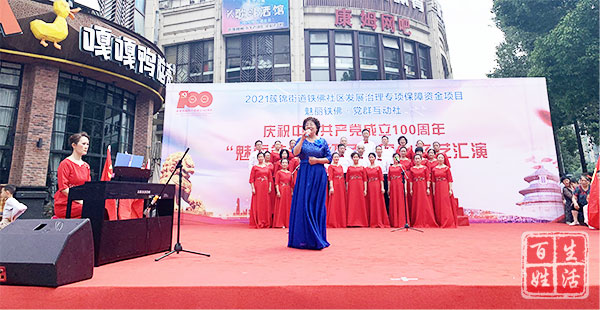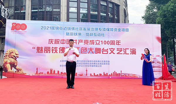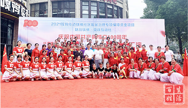 百姓生活讯(郑江)红旗飘扬,歌声嘹亮。为热烈庆祝中国共产党成立100周年,6月27日上午,由中共成都市武侯区簇锦街道铁佛社区委员会、四川省成都市武侯区簇锦街道铁佛社区居民委员会主办,四川省光华目光文化传播有限公司承办的庆祝中国共产党成立100周年“魅丽铁佛”红色大舞台文艺汇演活动在首信首御外侧广场举行,社区各支部、党员、居民共同参与。