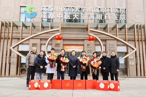 在新春佳节来临之际,1月25日上午,金牛区委常委、宣传部顾晓玲部长,荷花池街道办侯志明书记、李建新副书记、党群办周波主任一行到成都中医大银海眼科医院慰问医院段俊国院长、杨思进执行院长、眼视光中心周跃华总监、眼底内科孔玮主任,表达区委区政府对人才的节日问候,对银海眼科专家人才过去一年来在工作岗位上取得优异成绩表示肯定和鼓励。