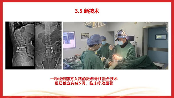 ◆一种经侧前方入路的微创脊柱融合技术,现已独立完成5例,临床疗效显著