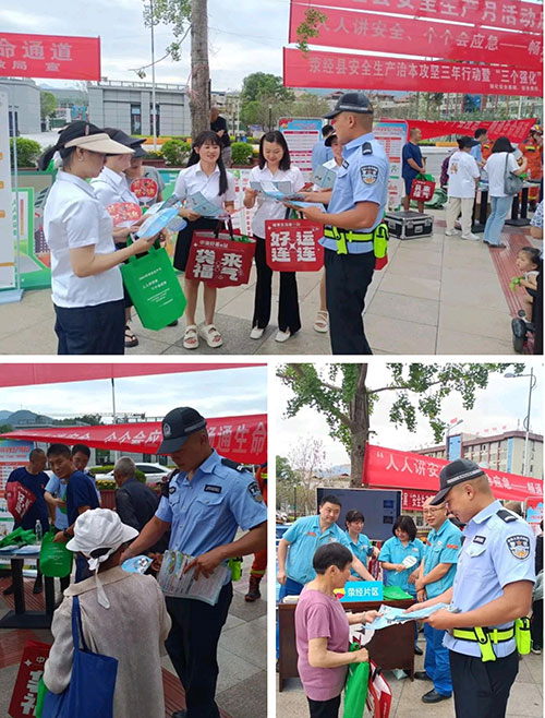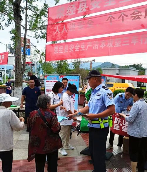 百姓生活雅安讯(罗阳 徐树鹏)2024年6月是第23个全国“安全生产月”,主题是“人人讲安全、个个会应急——畅通生命通道”,为切实提升广大交通参与者的交通安全意识、法治意识、文明意识,预防和减少道路交通事故发生。近日,雅安市荥经县公安局交通管理大队按照活动部署要求,在财富中心广场开展交通安全宣传活动。