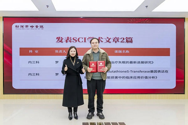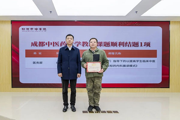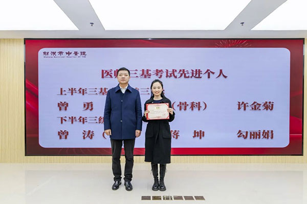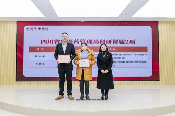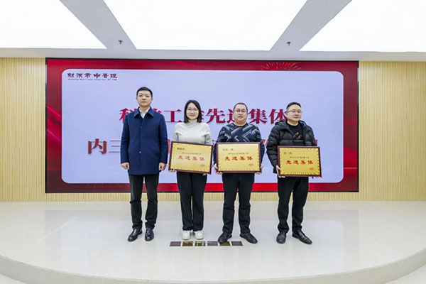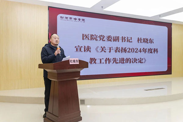 医院党委副书记杜晓东宣读了《射洪市中医院关于表扬2024年度科教工作先进的决定》。院领导班子成员分别为获奖代表颁发奖牌及荣誉证书。