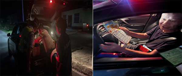 活动当晚,在石垭派出所门口,警灯闪烁,放置“毒驾酒驾检查”的展示牌格外醒目。民警在现场对过往车辆进行拦截检查,禁毒社工则向驾驶员发放禁毒宣传手册,并详细讲解新型毒品的相关知识,提醒驾驶员认清毒品危害,坚决抵制毒驾、酒驾行为。在检查过程中,民警和禁毒社工还特别查看了车辆的后备箱,确认是否有违禁物品。同时,他们反复告知驾驶员,毒驾和酒驾都是严重的违法行为,不仅危害自身安全,也威胁到其他道路使用者的生命财产安全。