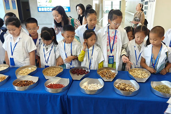 中药房里,“中药连连看” 和称重体验让孩子们兴致高涨。杜松柏老师先引导大家认识各类中药,通过“连连看”游戏将药材与功效对应,既考验观察力又锻炼记忆力。随后,两名小朋友自告奋勇体验药材称重,专注的神情赢得了在场所有人的掌声。