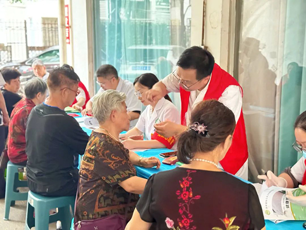 来自全科医学科、康复理疗科、公共卫生科等科室的党员医护人员为居民提供了专业的健康咨询、免费健康体检报告解读、耳穴敷贴以及血压、血糖测量等服务。党员医护人员耐心细致地解答群众疑问,从慢性病管理到日常养生保健,从安全用药指导到疾病预防知识科普,全方位守护居民健康,赢得了大家的一致好评。