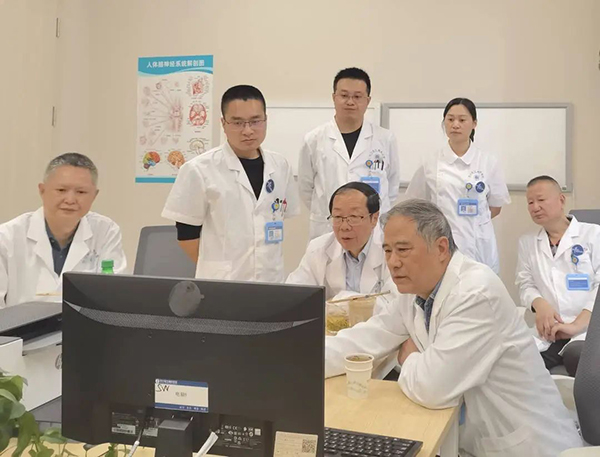 “病人刚被抬入医院时,已经处于昏迷状态,非常瘦弱。”参与救治的肖安兵回忆,手术治疗不但要克服高难度的技术挑战,还要直面病人全身健康状况极差难以承受手术创伤打击的问题。针对如此复杂的状况,医院组织了全院MDT(多学科会诊),包括神经外科、神经内科、呼吸科、重症医学科、麻醉科、心内科,评估治疗风险,制定最佳诊治方案。会诊专家团队不乏业内大咖,包括游潮教授、黄光富教授。