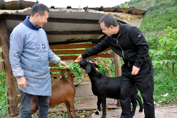 图为:驻村“第一书记”孙波去养殖专业户家里调研。