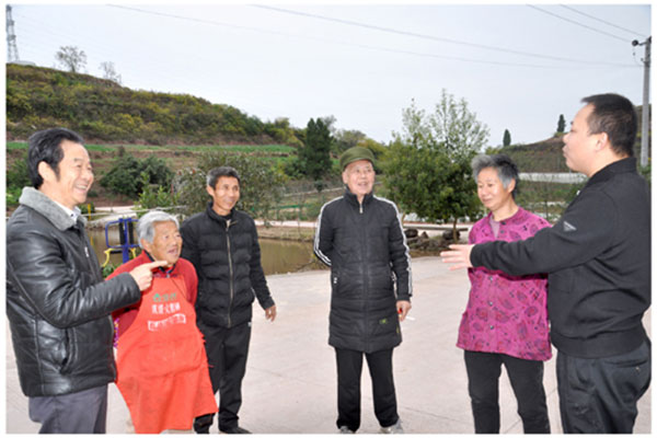 图为:与漏棚湾村的村民亲切交谈。