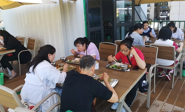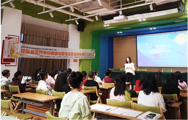 随后,“漫食光”负责人范老师分享了社区食堂建设与落成的诸多故事,并向在座的居民说明了食堂的营业时间、餐品价格、优惠细则等关键信息。面对居民提出的各类疑问,范老师也耐心地一一解答,全力确保居民们能够安享民生“食”事。休息片刻后,现场居民、志愿者和微网格员在饭点时分正式体验了来自家门口的满满“食”惠。